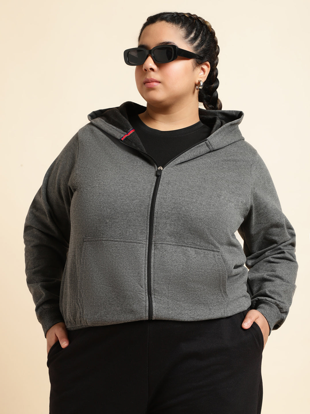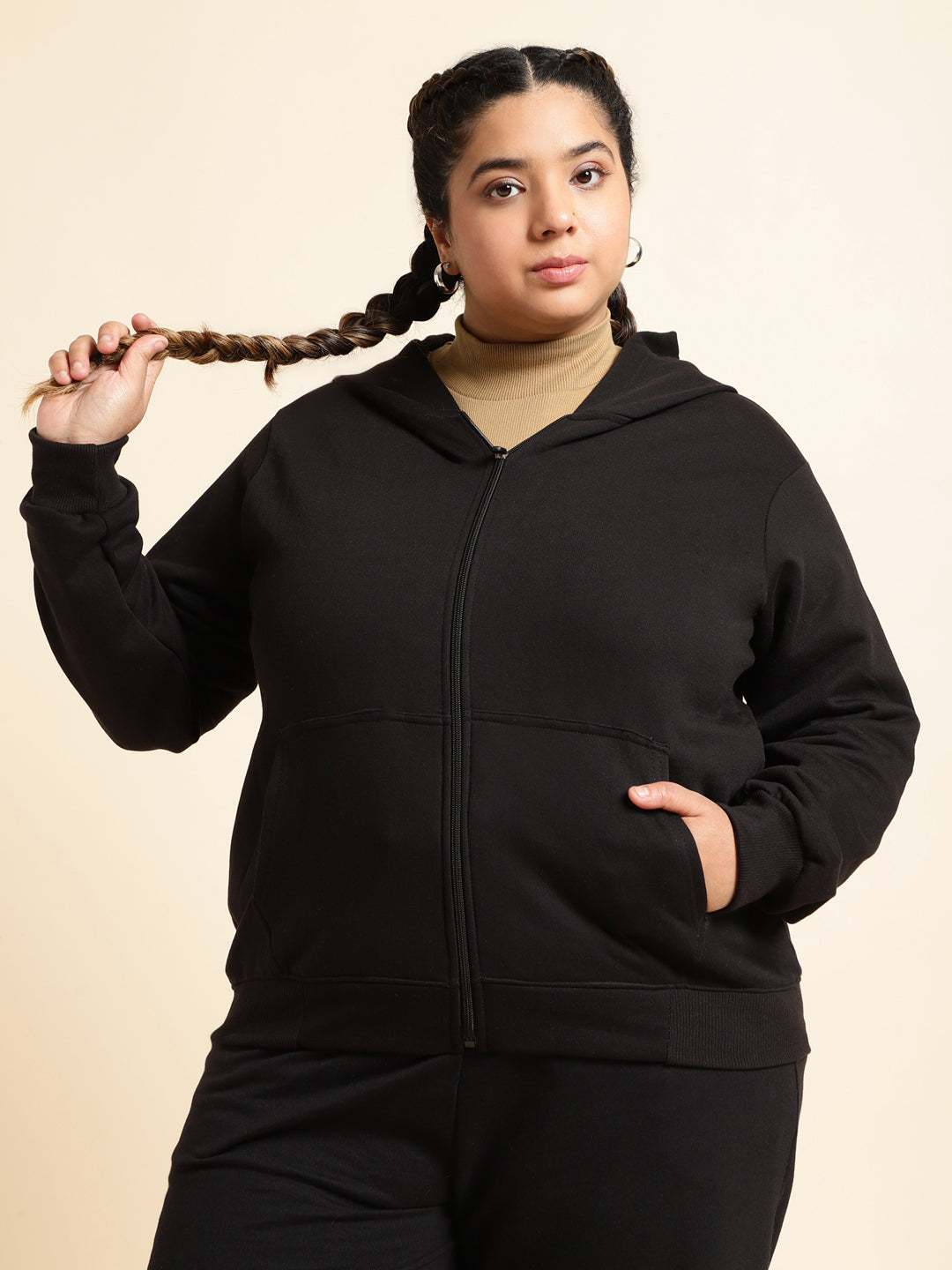 Unaone Pure Cotton Fleece Black Oversized Full Sleeve Winter Wear Hooded Sweatshirt For Women