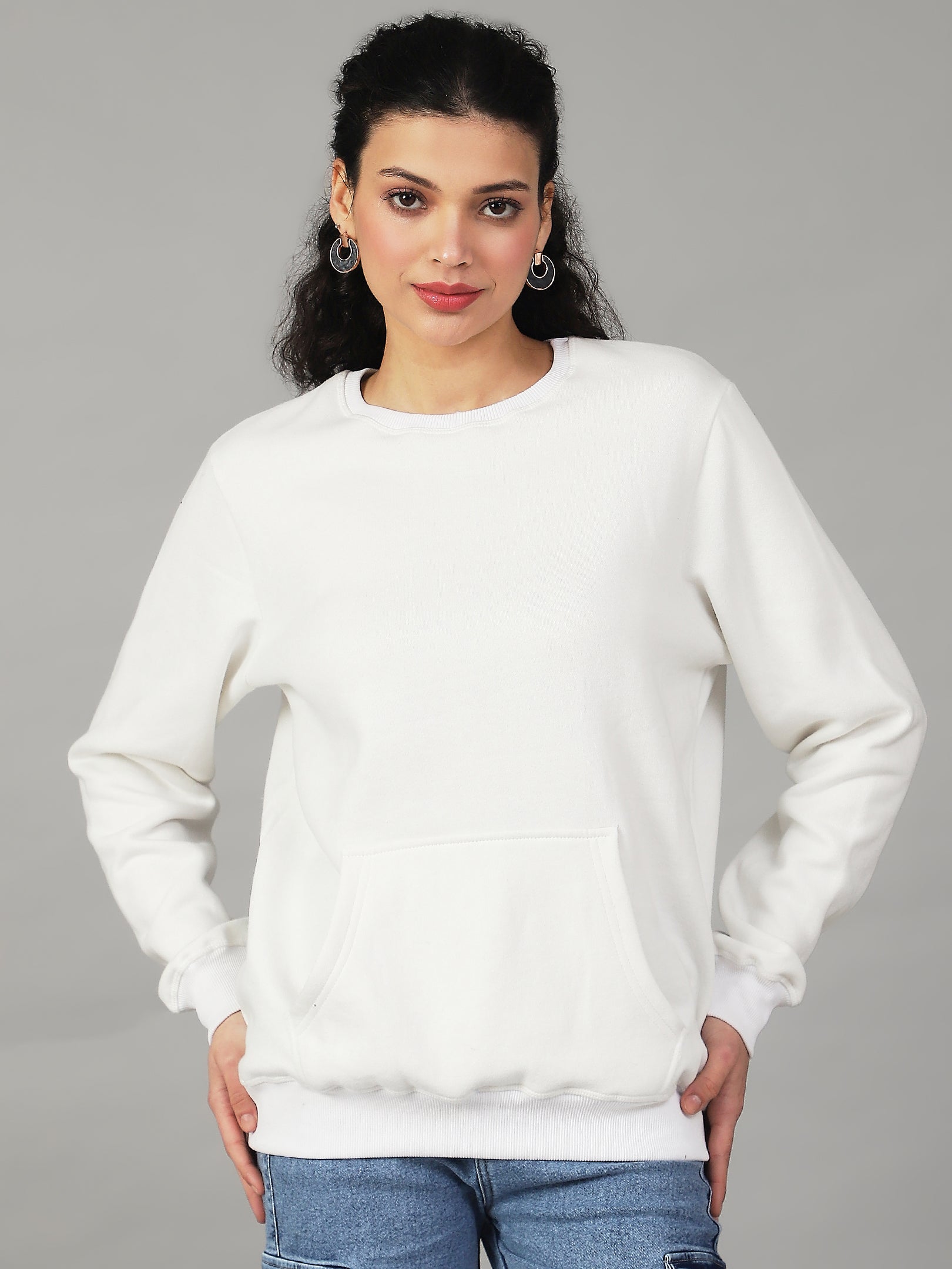 Unaone Pure Cotton Fleece White Oversized Full Sleeve Winter Wear Hooded Sweatshirt For Women