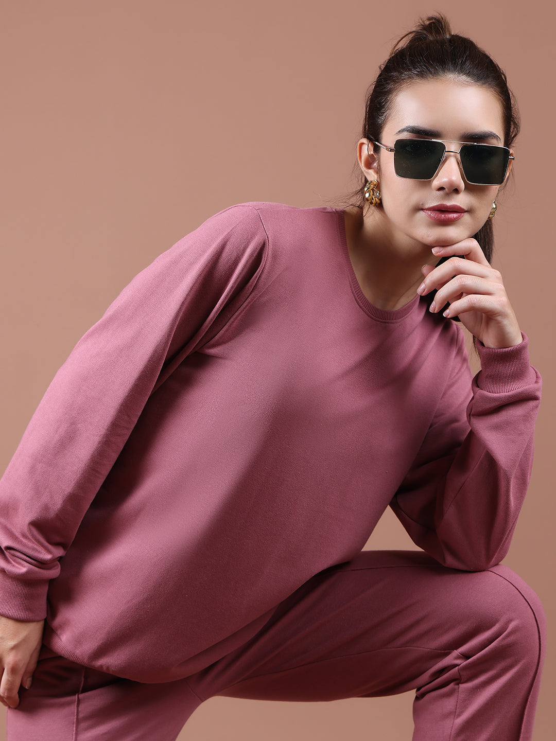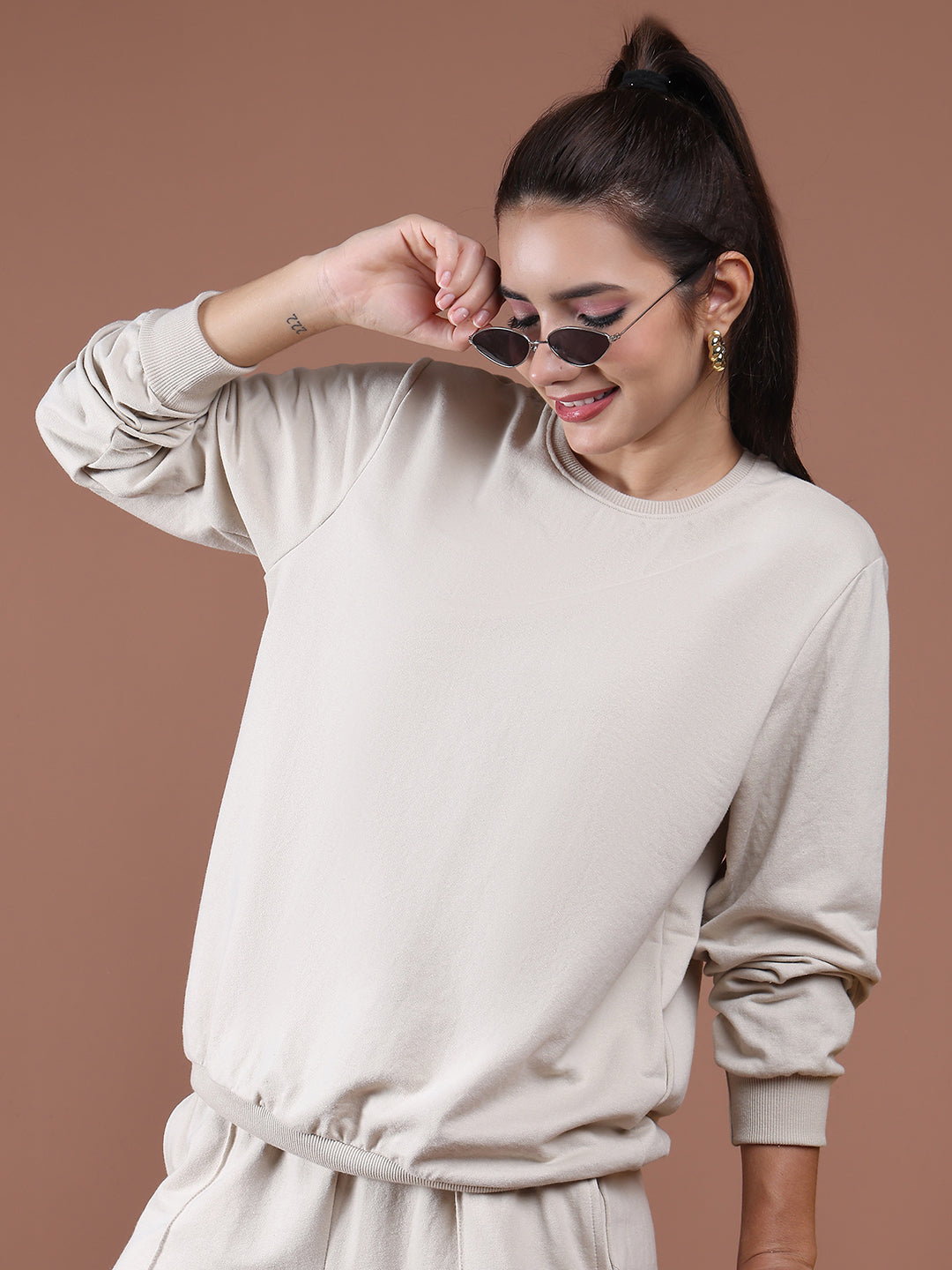 Unaone Pure Cotton Fleece Beige Oversized Full Sleeve Winter Wear Hooded Sweatshirt For Women