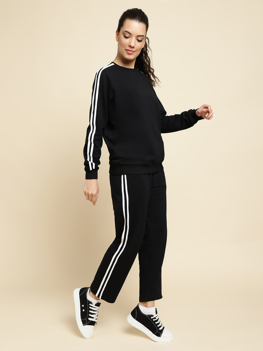 Unaone Pure Cotton Fleece Black Oversized Full Sleeve Winter Wear Hooded Sweatshirt For Women